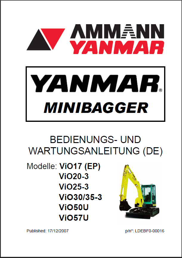 YANMAR ViO17,ViO20,ViO25,ViO30, ViO50U, ViO57U BEDIENUNGS- UND WARTUNGSANLEITUNG