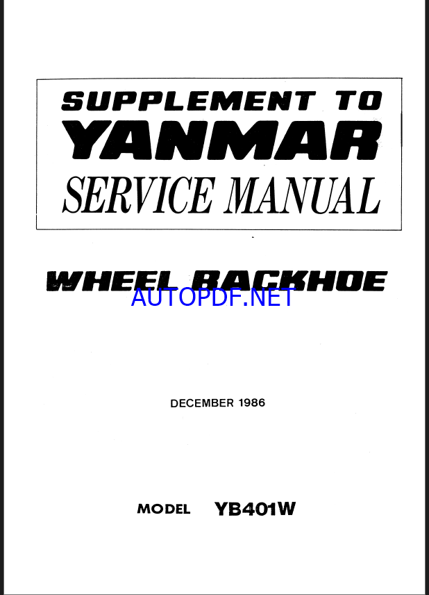 YANMAR YB401W Wheeled excavators SERVICE MANUAL