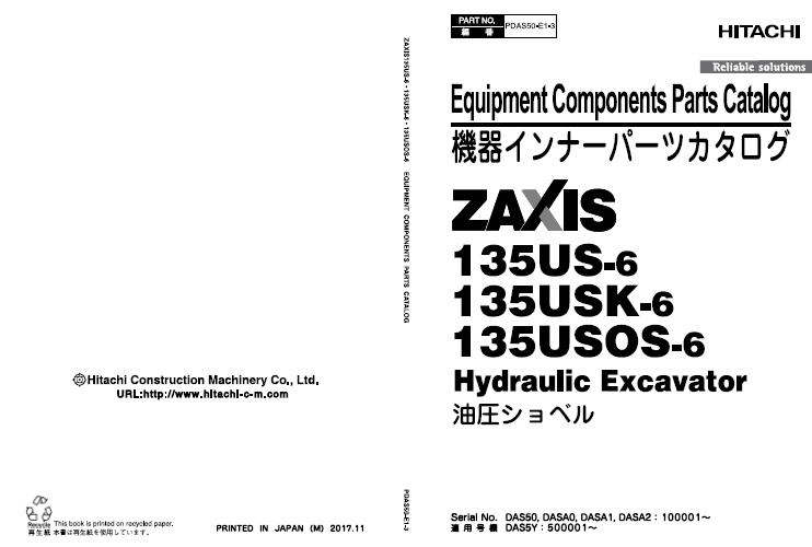 ZX135US-6,ZX135USK-6,ZX135USOS-6 Equipment Components Parts Catalog