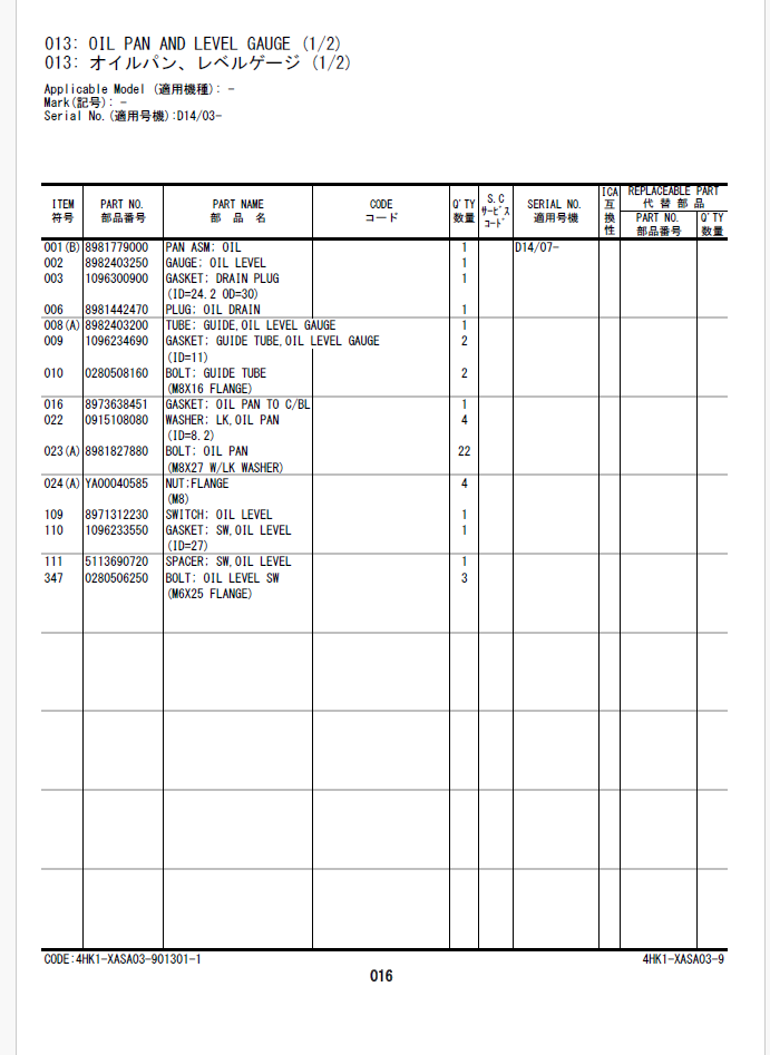 Model: ZX170W-6,190W-6 ISUZU (4HK1-XASA03)