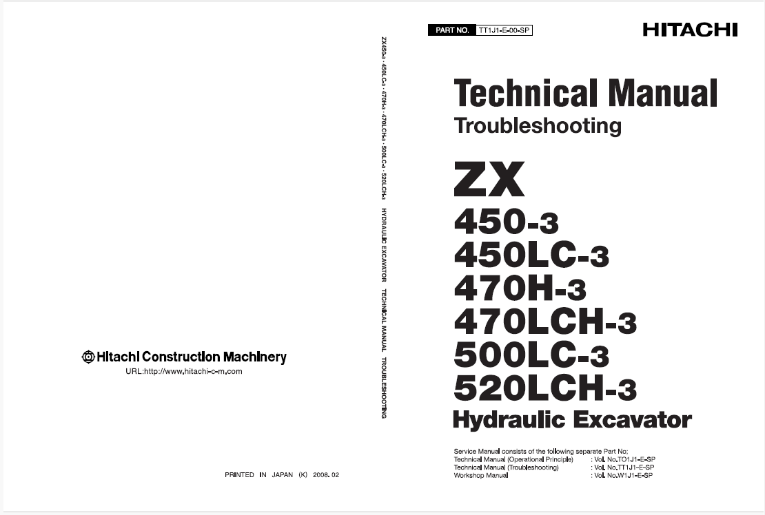 ZX450-3,ZX450LC-3,ZX470H-3,ZX470LCH-3,ZX500LC-3,ZX520LCH-3 Technical manual (Troubleshooting) (Use for countrys subject to a EAR control)