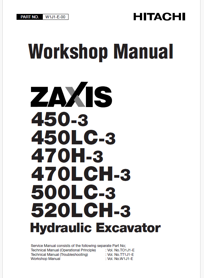 Hitachi ZX450-3,ZX450LC-3,ZX470H-3,ZX470LCH-3,ZX500LC-3,ZX520LCH-3