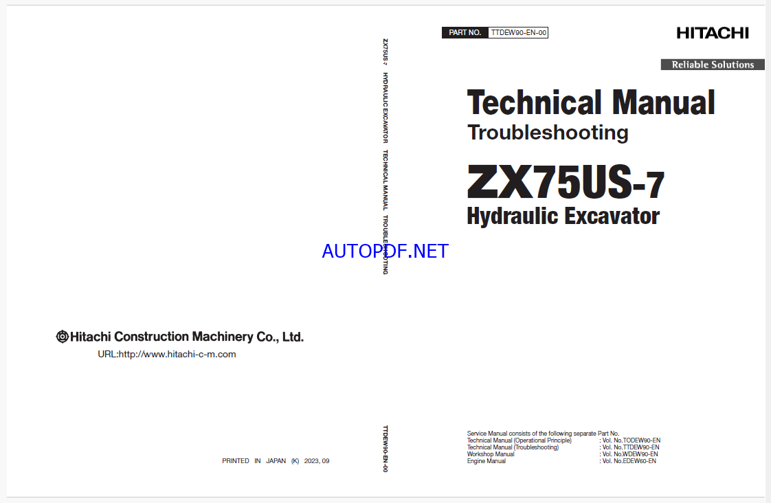 Model: Technical Manual Troubleshooting,ZX75US-7 Hydraulic Excavator