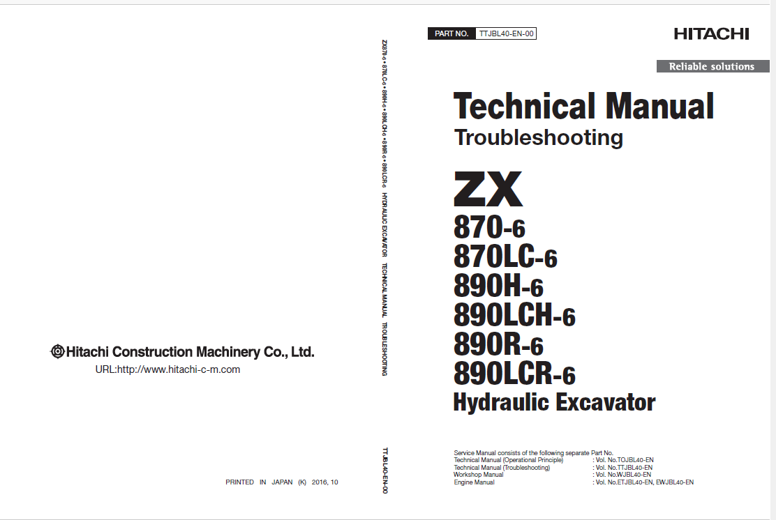 Hitachi ZX870-6, ZX870LC-6, ZX890H-6, ZX890LCH-6, ZX890R-6, ZX890LCR-6